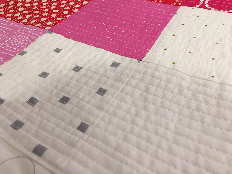 I quilted this one myself, just dense straight horizontal lines about ¼” apart.