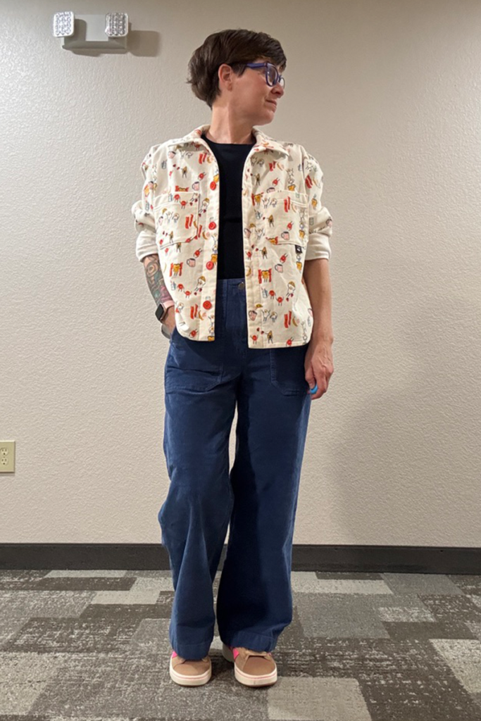 I’ve recently returned to sewing apparel (been a long break since junior high!). I’m slowly relearning skills and adding new ones. This is the Fairmount Shacket by Hey June Handmade – an oversized shirt jacket.