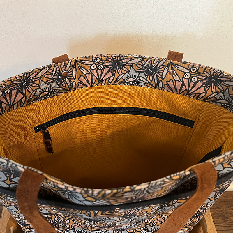 I couldn’t make just one bag with that beautiful Amy MacCready floral. Here’s a Wool + Wax Tote: