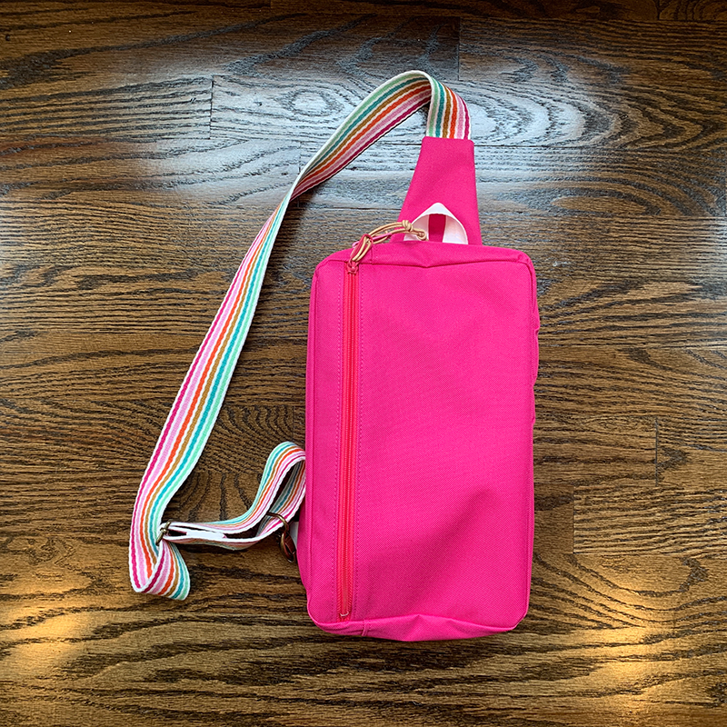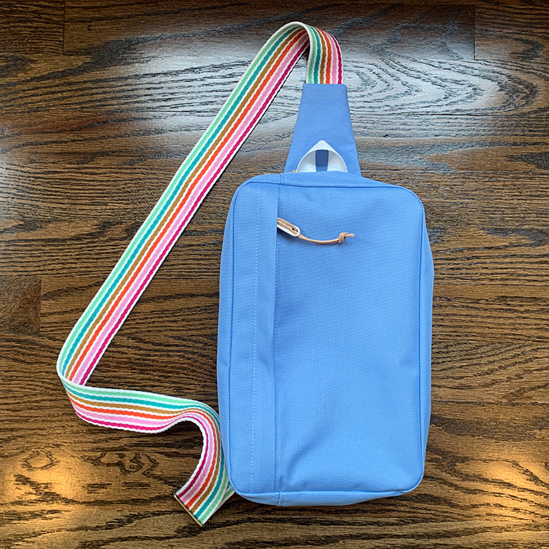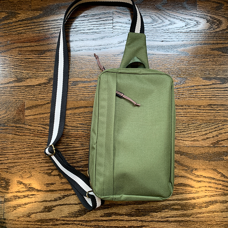 Just finished four modified Sandhill Slings. After making my first one true to the pattern, I decided to change the zipper placement, which in turn changed the front pocket orientation. This way, when you wear it over your shoulder it’s much easier to unzip and get inside without taking off the sling.