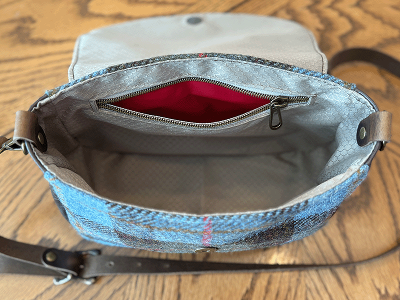 My sis is headed to Scotland, so I made her a small crossbody using genuine Harris Tweed. This is the Charlotte crossbody, previously made in hot pink leather.