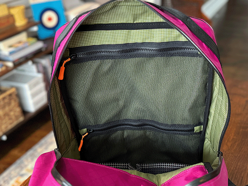The pockets are all of my own design minus the front turtle shell. I thought about everything I needed it to hold and designed them that way. I also noted what didn’t work from my TRVL 15L backpack in terms of pockets and size.