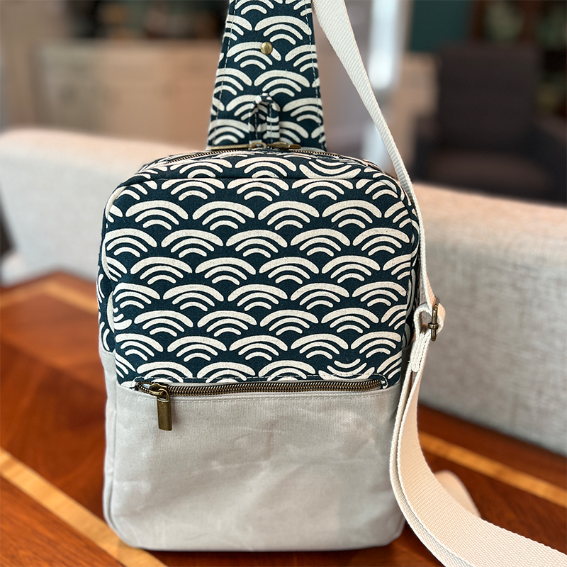 Made a Meridian Sling  – what a great pattern! I used waxed canvas on the bottom and Koi Pond canvas by Ruby Star Society.