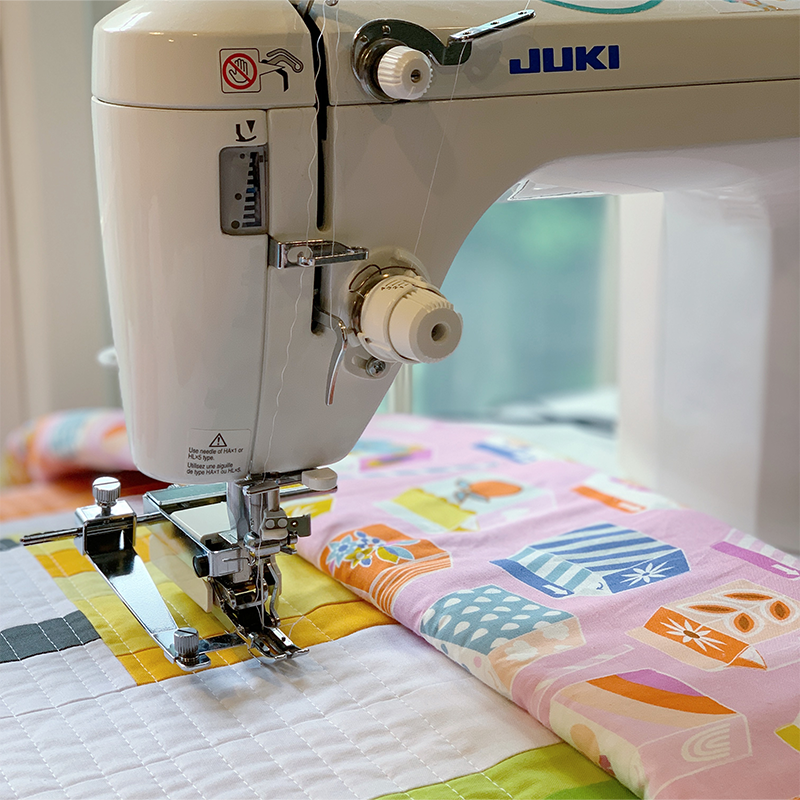 Pieced and quilted with Aurifil 50wt thread in white on my Juki TL-2010Q machine. Quilt lines are approximately 1/2″ apart. Just look at all that texture, even before washing!