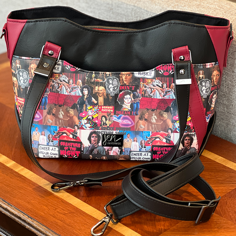 Made this Hiraeth Handbag for one of my oldest friends. We were in high school theatre together so this Rocky Horror vinyl holds special meaning. 👄 👄 👄