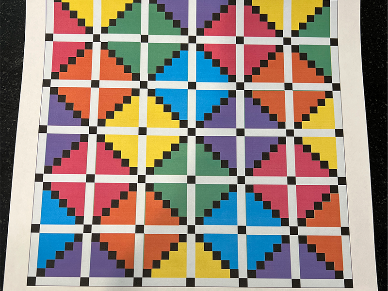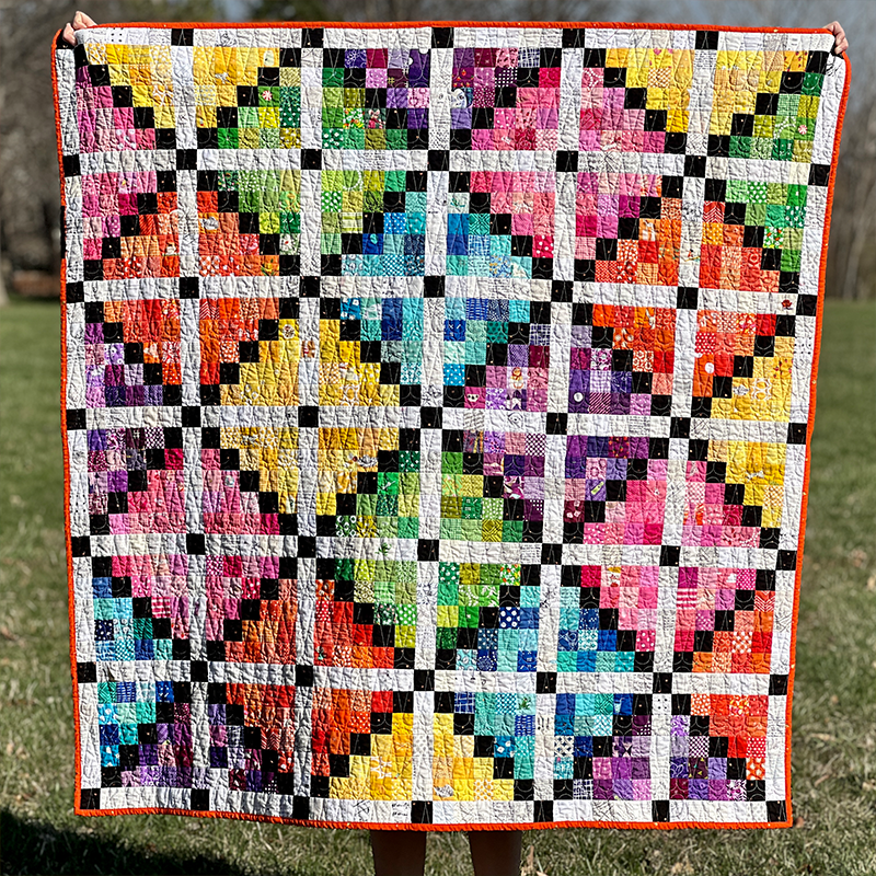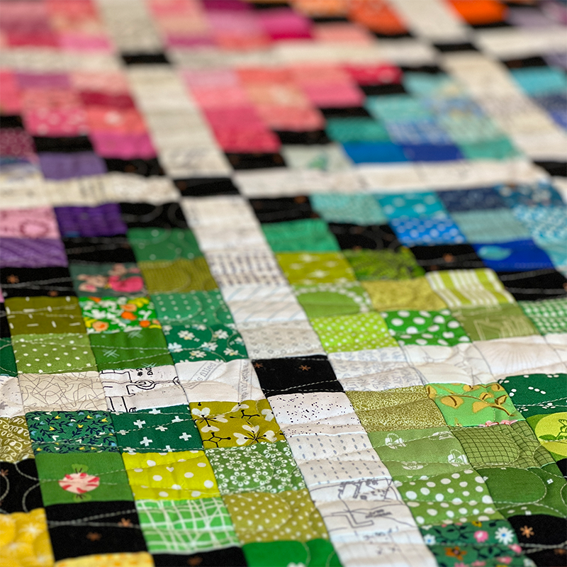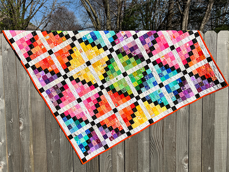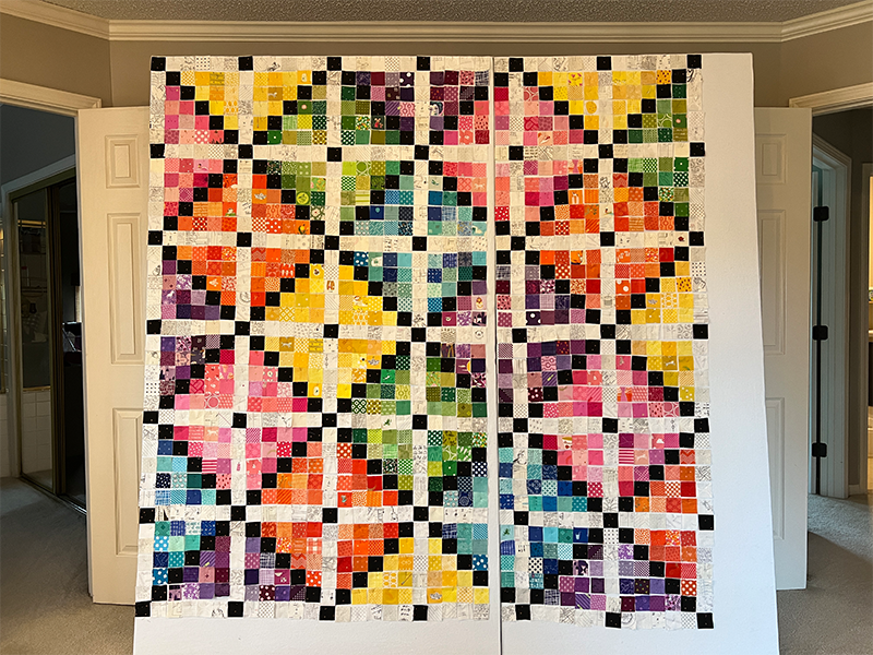 This is the Scrappy Irish Chain, with my own rainbow spin on it. ๐ It measures 55″x55″.