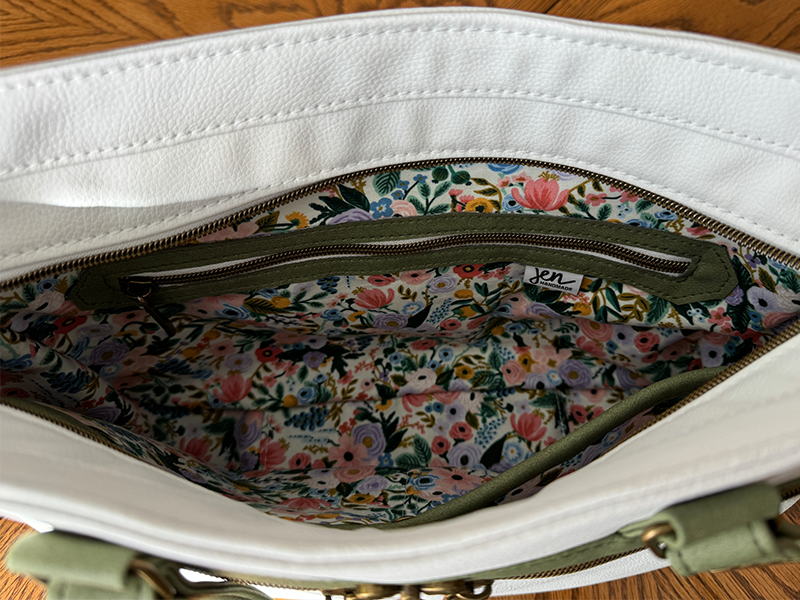 The Rifle Paper Co lining fabric matched perfectly with the spring theme.