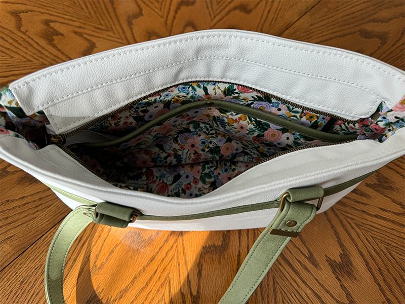 My mom has the best group of childhood friends that support my sewing. This bag design was requested in solid colors with green accents. A Bagstock Designs pattern never disappoints!