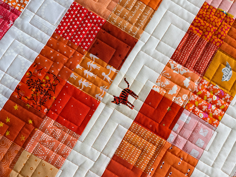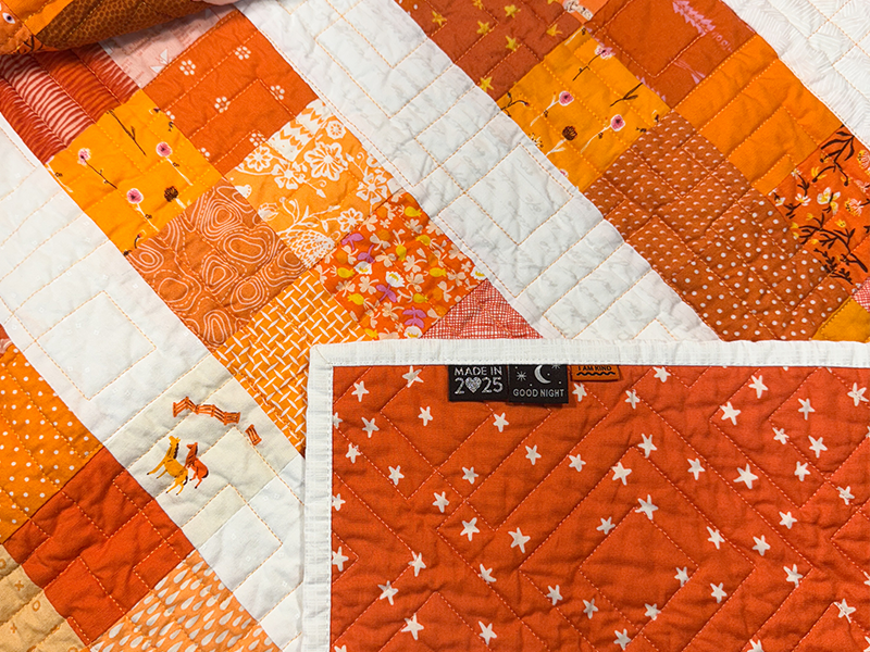 My neighbor who is pregnant with her second child, also has a 7-year-old boy. I didn’t want him feeling left out with all the baby gifts, so I made him a quilt in his favorite color….orange! 🍊