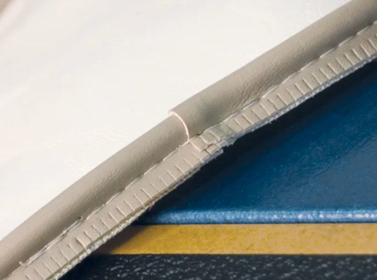 Add vinyl trim to zipper panel.